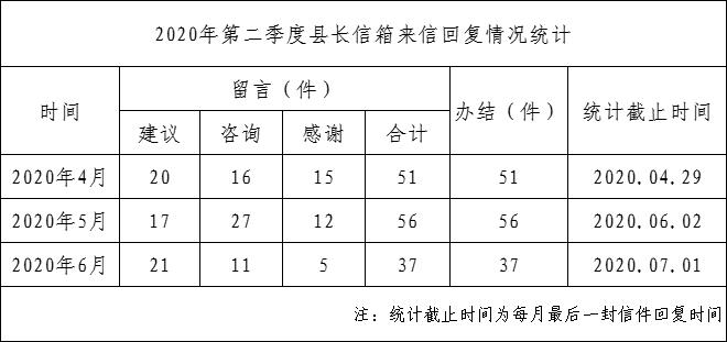 2020年第二季度县长信箱来信回复情况统计