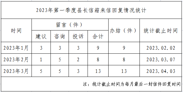 2023年第一季度县长信箱来信回复情况统计