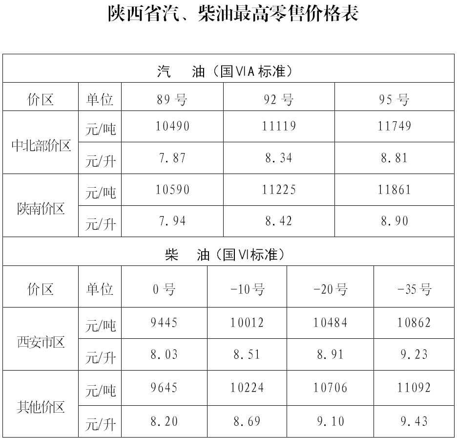 根据《石油价格管理办法》和国家发展改革委公布的国内成品油价格调整信息,现将我省汽、柴油最高零售价格公布如下,自2022年11月7日24时起执行。