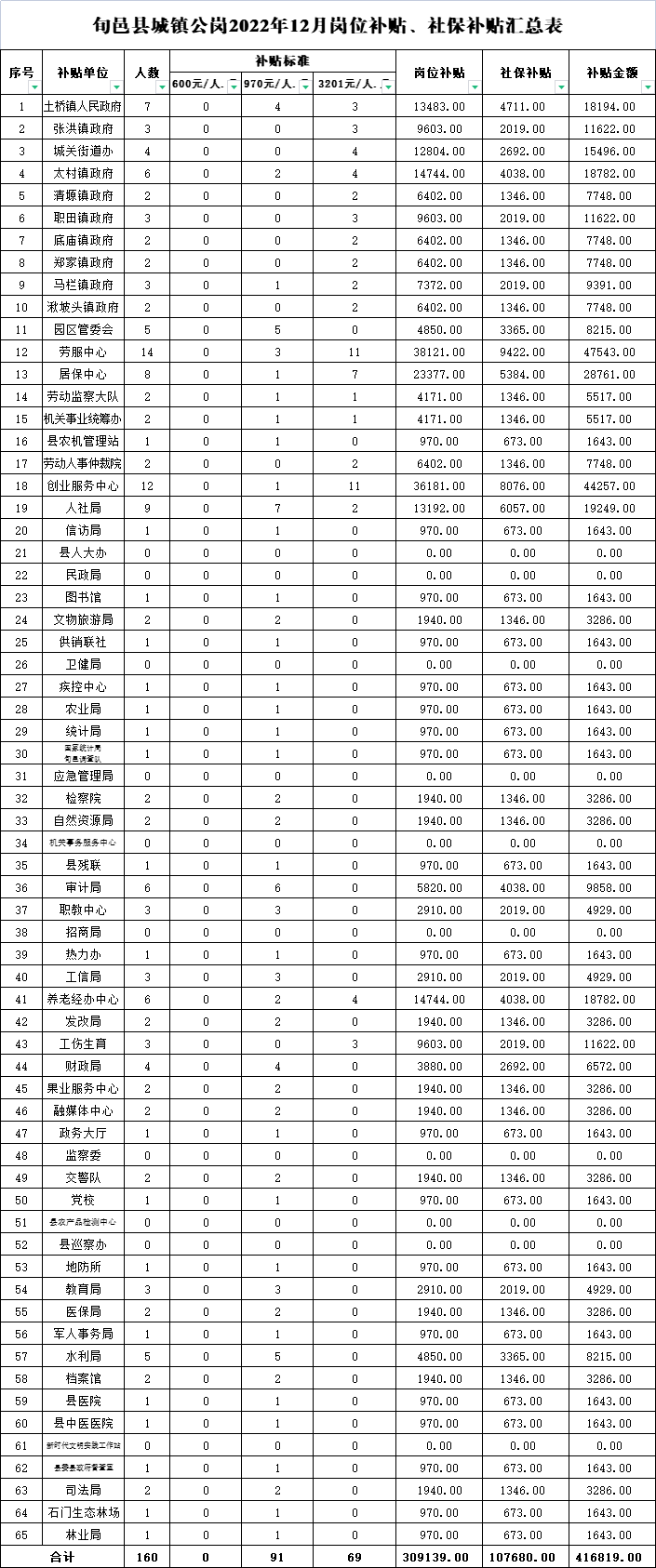 附:1、旬邑县2022年12月公益岗人员岗位补贴、社保补贴发放汇总表