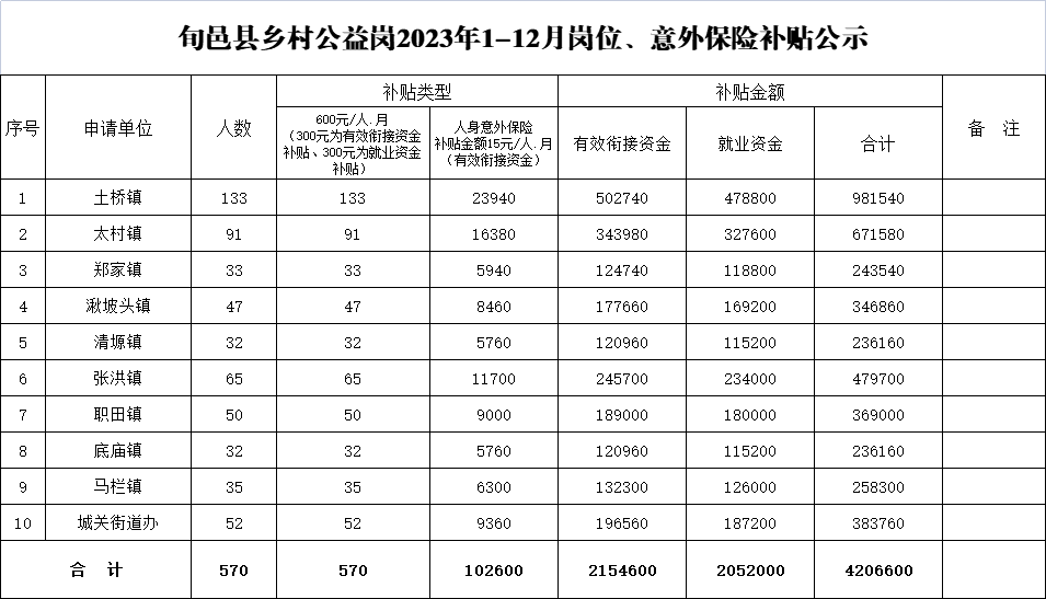 附: 1、旬邑县乡村公益岗2023年1-12月岗位、意外保险补贴公示