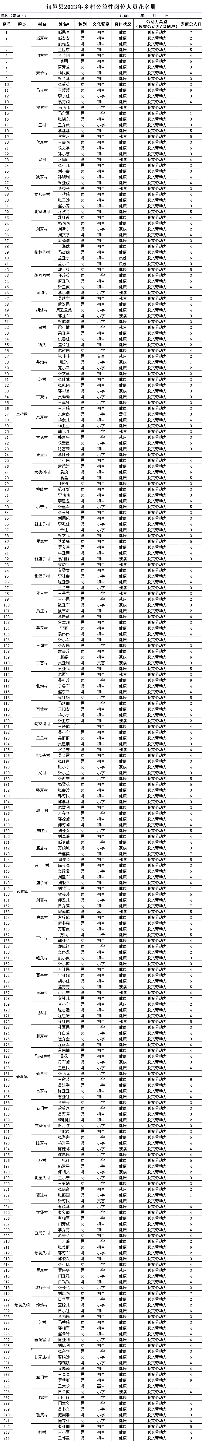 2、旬邑县2023年乡村公益岗人员花名册
