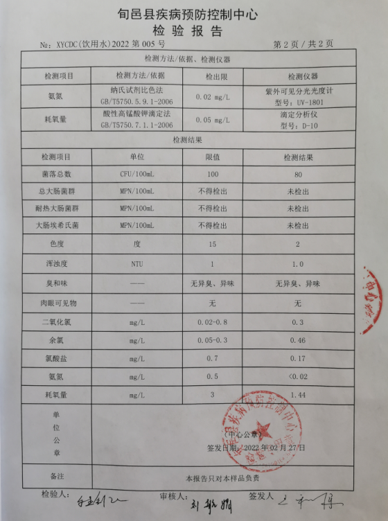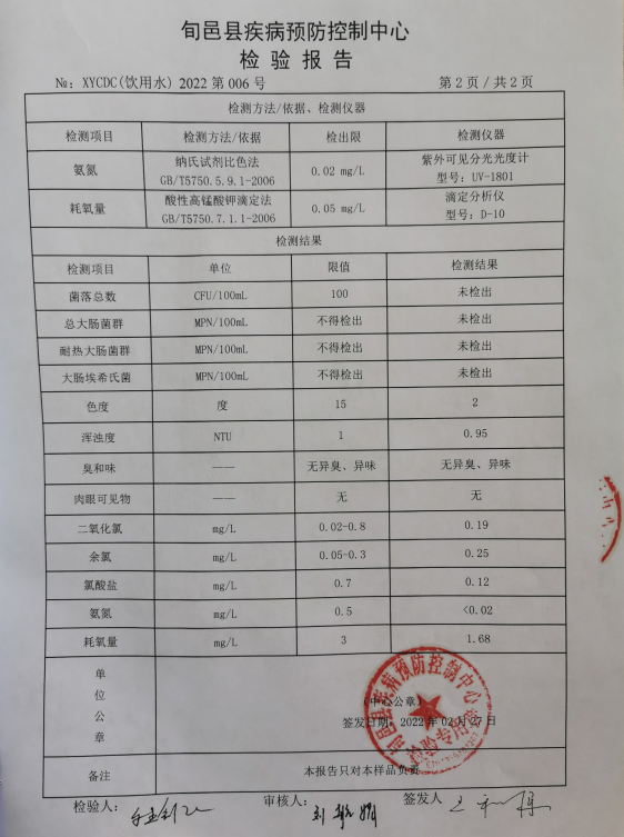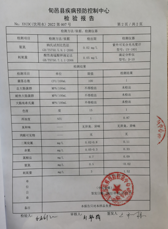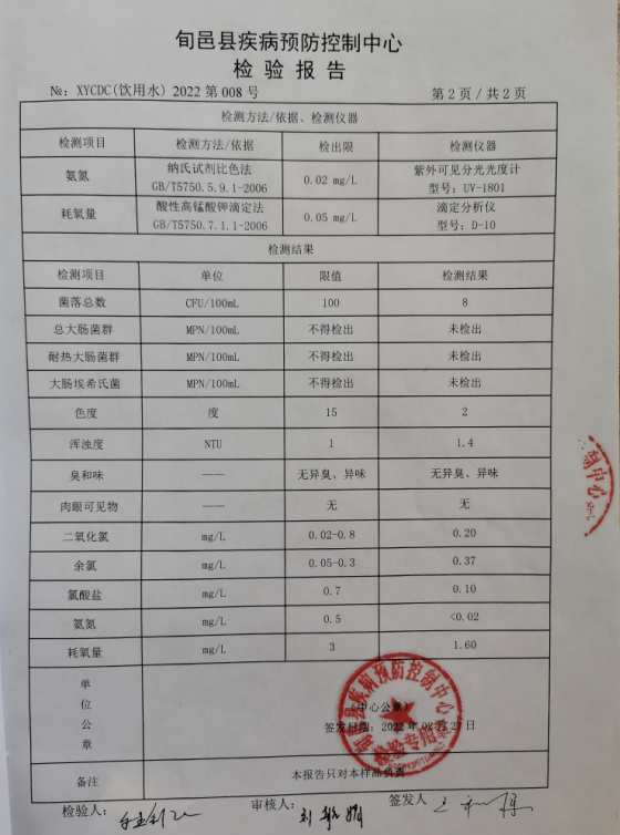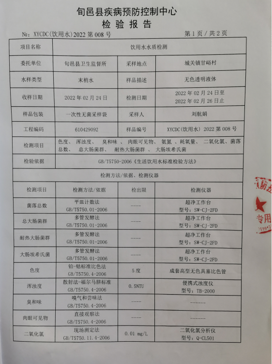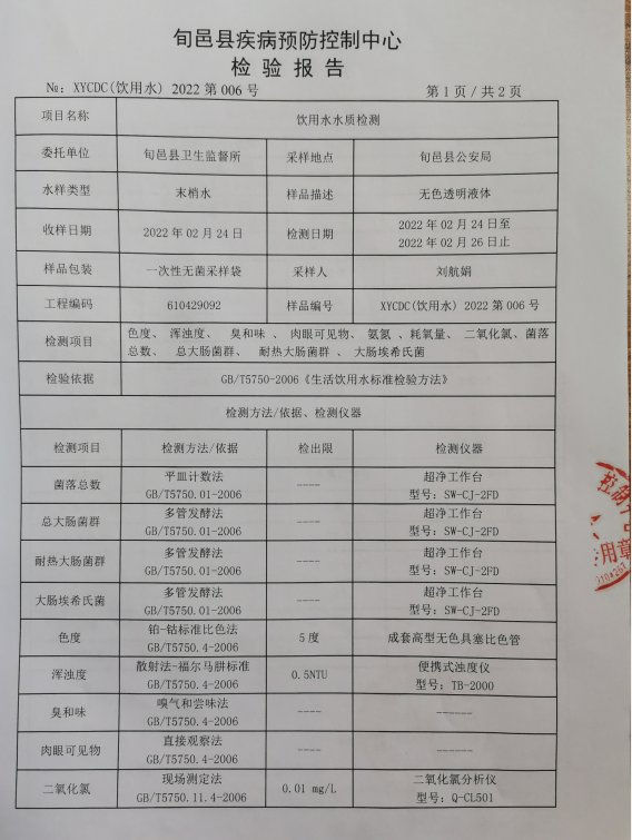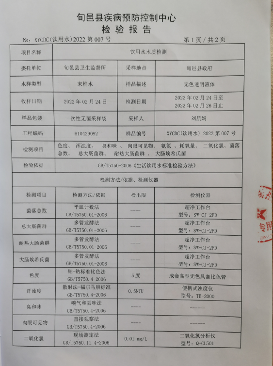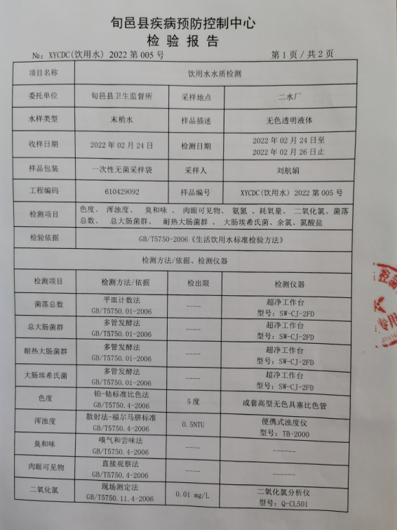 旬邑县城水质检测报告