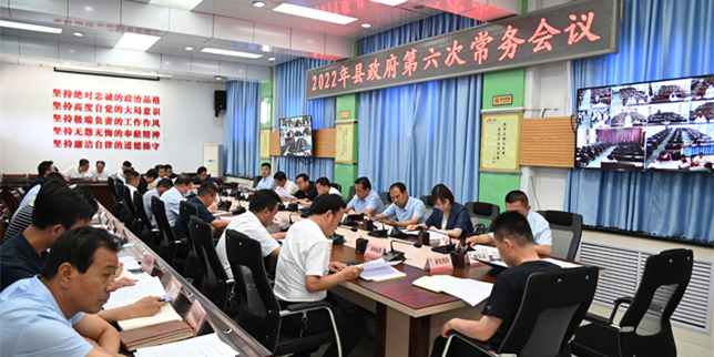 7月29日,县长师虎主持召开县政府第六次常务会议,县人大常委会副主任井志刚,县政协副主席曹忠印应邀出席会议。